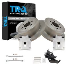 TRQ brake kits are designed to restore your brake system to like-new performance. TRQ brake pads are positive molded, thermal scorched, chamfered, and utilize a multi-layer shim for enhanced performance and service life. TRQ rotors have a non-directional finish that reduces the break-in period for new rotors as well as reducing vibrations throughout the rotor’s lifecycle. All products are fit and road-tested in our Massachusetts R&D facility to ensure we deliver on our promise of Trusted Reliable Quality.