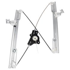 Put it down on the motor. You may have to turn it a little bit until the gear decides it wants to mesh. Let's see. OK, and then put your 8-mm bolts back in. And speed up here again. So I put each bolt in by hand first. Then use the socket and ratchet to tighten them up. When you tighten them up be careful not to over tighten them. You want to tighten them nice and firm, but you don't have to make them too tight. OK, now you want to take the motor, turn it over, and then you want to put your panel on top here. The regulator comes through. OK, and then position the motor so that you can see the holes. And we'll start in these bolts for the motor. Basically what you want to do here is you're bolting the motor back on, and I'm just kind of speeding through this. Put all three bolts into the window motor by hand first. Then tighten them up nice and firm, and then you want to put the nuts that hold the window regulator rails to the panel. You want to put those on just by hand, and then put the harness through and lock that plug in place. OK, then I'll take your panel and put it up in. Make sure the top, the rails go inside the door. Lift it up. Make sure our harness isn't getting tangled up here. I'm going to have to reach back a little bit, make sure that the regulator goes in there correctly. Now I'm going to obviously speed up as we put those bolts back into the perimeter of the door panel. Tighten them up and then also tighten up the nuts that hold the window regulator rails onto the panel, as well as just do a quick check on the motor to make sure those are tight.