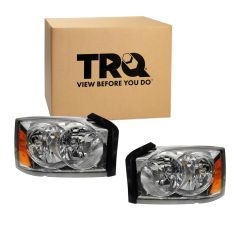 Replaces 2005 Dodge Dakota Driver & Passenger Side 2 Piece Headlight Set TRQ HLA74272