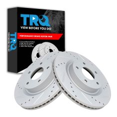 So, to do the job right, I would just go down to 1A Auto. You can go ahead and you can get these rotors right here and some quality pads. These pads are slotted and they're also drilled, and they're also cross-cut. If you look really close, you can see the braking surface doesn't just have cuts going one way, they go both ways. That's for extra braking friction. And the slots and the drilling is also for cooling and brake dust dissipation. These right here are quality rotors, quality pads. They'll work great on your vehicle. For this or any other part, you can always come down to 1AAuto.com.