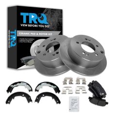 Replaces 2012 Kia Soul Rear Ceramic Brake Pad & Rotor Kit with Parking Shoes TRQ BKA28044