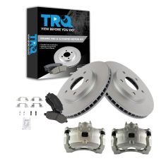 TRQ brake kits are designed to restore your brake system to like-new performance. TRQ brake pads are positive molded, thermal scorched, chamfered, and utilize a multi-layer shim for enhanced performance and service life. TRQ G-coated rotors have long-lasting rust prevention, perfect for wheels with large openings that expose the rotor and rotor hat during daily drives. All products are fit and road-tested in our Massachusetts R&D facility to ensure we deliver on our promise of Trusted Reliable Quality.