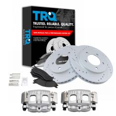 2000 Lincoln Navigator 4 Wheel Drive Front Semi-Metallic Premium G-Coated Performance Brake Pad & Rotor Kit with Calipers TRQ Performance BKA18415