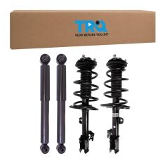 TRQ fully loaded shocks and struts are manufactured using premium raw materials and calibrated to restore original ride comfort. TRQ shocks are fully loaded featuring a pre-loaded bearing plate, upper and lower spring isolator, upper spring seat, coil spring, boot kit, and premium strut. TRQ recommends replacing your shocks or struts in pairs to ensure even wear of components and improved ride comfort. All products are fit and road-tested in our Massachusetts R&D facility to ensure we deliver on our promise of Trusted Reliable Quality.